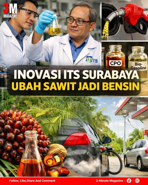 Peneliti dari Institut Teknologi Sepuluh Nopember berhasil mengembangkan bensin berbahan dasar kelapa sawit sebagai alternatif energi ramah lingkungan. Melalui proses katalitik, minyak sawit diolah menjadi biogasoline dengan emisi lebih rendah dan limbah minimal. Inovasi ini membuka peluang kemandirian energi nasional, meski masih dalam tahap pengembangan sebelum dapat digunakan secara luas di masyarakat.