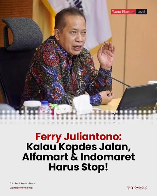 Menteri Koperasi Ferry Juliantono menegaskan bahwa keberadaan koperasi desa (Kopdes) harus mendapat dukungan penuh pemerintah. Ia menyebut, jika Kopdes sudah berjalan, maka ritel raksasa seperti Alfamart dan Indomaret seharusnya dihentikan. Ferry menilai pemerintah perlu berpihak pada koperasi desa agar tidak kalah bersaing dengan jaringan minimarket yang sudah merajalela.